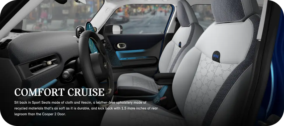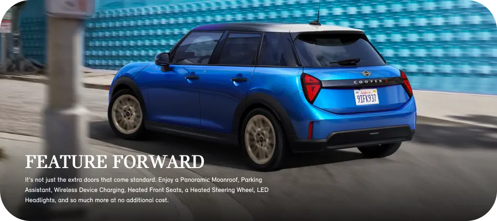 New features on the MINI Cooper 4 Door models include a 9.4” circular OLED display, Remote Engine Start, MINI’s Intelligent Personal Assistant, leather-free Sport Seats, MINI Head-up Display, and more.